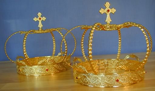 corona Corona di metallo o di stoffa ad imitazione di fiori di limone, con la quale il Sacerdote incorona gli sposi durante il sacramento del Matrimonio. La corona è bianca in segno di purezza e rappresenta il potere degli sposi, come re e regina della loro casa. La corona è formalmente deposta con un’apposita cerimonia dopo otto giorni.