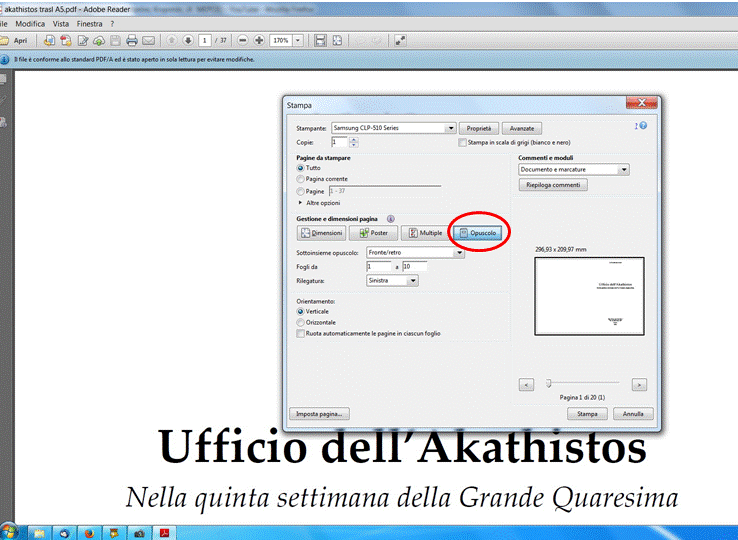 Per stampare i testi presenti in questo sito in forma di opuscolo A5 (metà A4) è sufficiente: